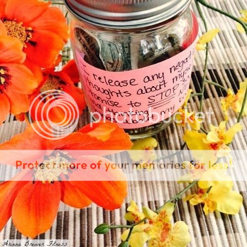 Any time you have a negative thought, or make a negative statement about your body, or yourself in general, put a dollar in the jar.