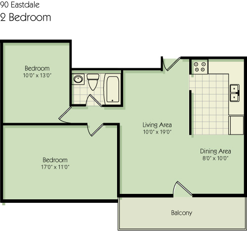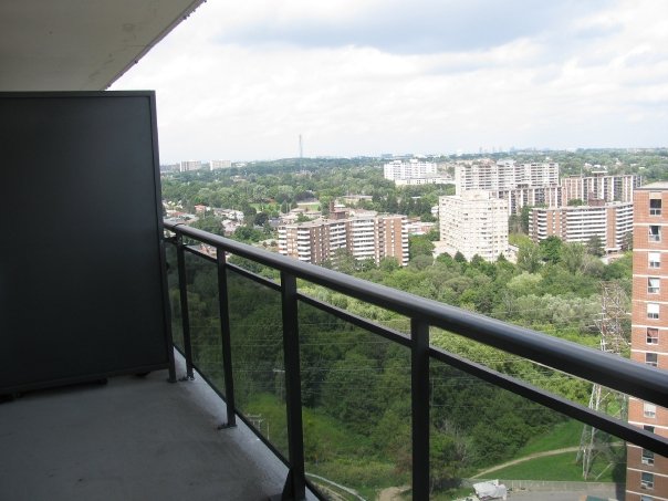 it's a 2 bedroom, on the 17th floor. it's about a 10 minute [maybe 15 with my short legs] walk to the main st. subway station or to work. the building's about 35 years old, and they've been working on updates. apparently the lobby has been redone, and our apartment will be one of the units that has new tile and cabinets in the kitchen and bathroom. the balconies have also been redone, with glass, and look great.