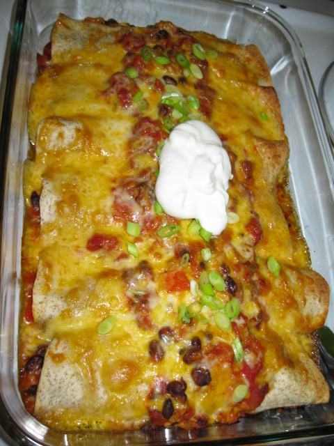 it's been a while since i've posted photos of feasts. okay, so it's been a while since i've actually bothered to make a decent meal. anyway. i got it in my head this morning that i'd make enchiladas for dinner. i've never made them before, but i figured i could whip something up. so i did, and holy delicious.