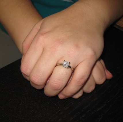 josh asked me to marry him last night. it was a TOTAL surprise to me. i mean, we'd talked about getting married, but i wasn't expecting him to propose any time soon. it was so adorably awkward when he did. we were about to go out to get hair cuts. i was putting on my shoes and when i turned around, he was on one knee with the ring. he asked. i said yes, of course, tho in truth it was likely one of the most disappointing acceptances ever. there were no movie style tears, no breathless "yes". i was just so shocked.