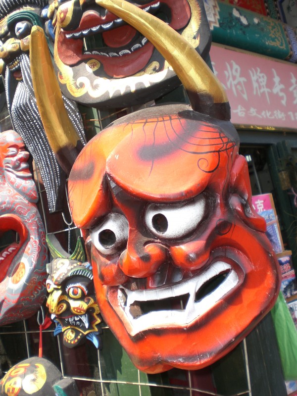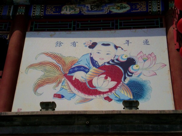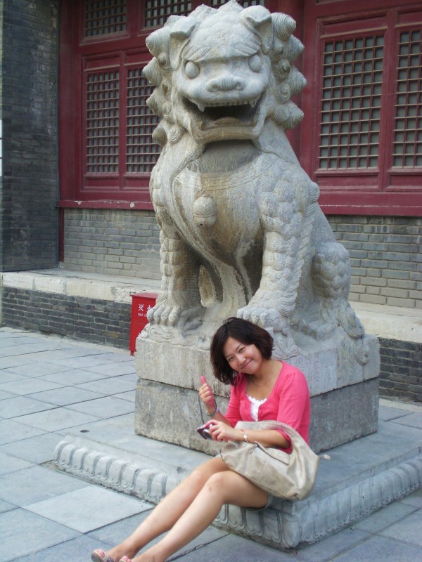 The temple was really pretty, there were huts at the sides of the two courtyards, each one housed several deities. I had no idea whether this was a Buddhist, Daoist or Confucian temple, but whichever religion it might have been built by, it's been completely over-run by the Chinese practice of ancestor-worship - nearly every single figure was historical, a person famed for their genorosity, skill in battle or skill with medicine. Emma gave me some incense to "pray" with, but her literal words were "Ok, take this, make a wish" The concept of having something to wish to isn't alien to me (most westerners wish on stars, anyway) but it was the fact that the things I was supposed to wish to were housed in a temple, it made it slightly strange. The 4 dragon kings of the sea 龙王 were there, they were definitely gods, and I felt really bad "wishing" to them, but to Emma the idea of asking a god to give you what you want in return for nothing seemed normal - one hut had some statues of people that we didn't recognise (Emma and Sally included) but they prayed to them anyway. They found it strange when I said I didn't want to pray to someone I didn't know. It probably sounds picky to them, but I don't like praying to something when it could represent absolutely ANYTHING *spazms*