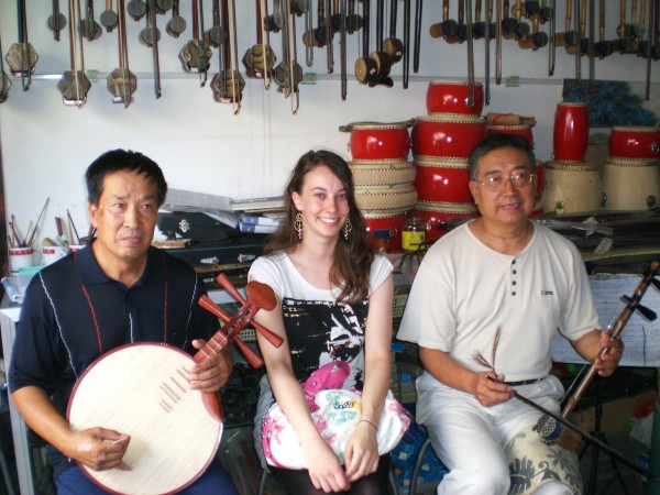 First shop we went in to was a music shop, traditional instruments like erhu 二胡 and pipa 琵琶, twas choc-a-bloc full of these things. There was a man testing out a slightly round pipa, he played a little (it sounded quite nice) then his friend said something (not a clue what) and Emma told me they were going to sing for me o_O; It was very nice of them, but one guy played the erhu (which was slightly out of tune) and the song the other guy chose to sing was a Beijing Opera type song If you've heard Beijing Opera you'll understand, very loud, very screechy, very harsh - a guy with a broken instrument and another 50 years old performing this was an interesting experience to say the least. I a have a video of it, which I'll try to upload *incompetent*