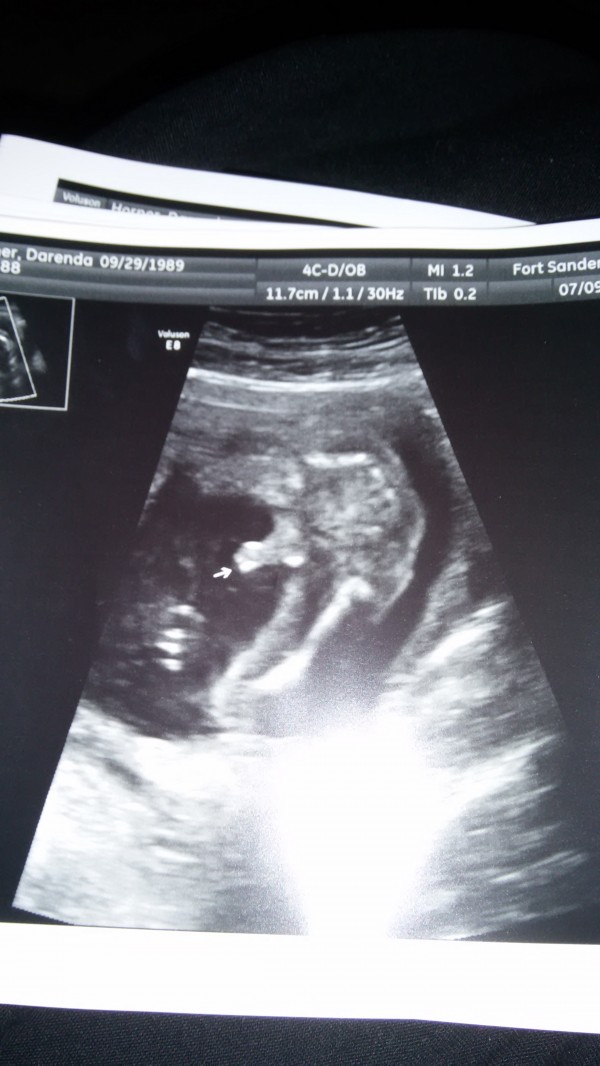 April 8, 2015 - First ultrasound at OBGYN office to make sure baby is okay, and hopefully found out my due date. Baby is great, due Date is December 3, and the heartbeat was 140.