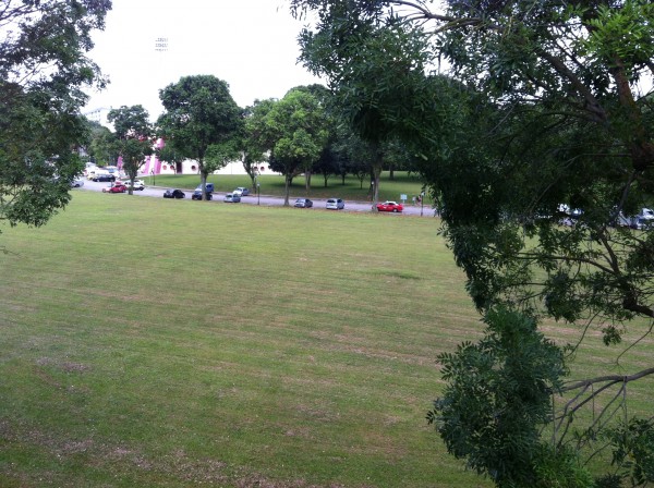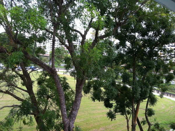 I took photos of the view from the window again, this time with my mom's phone. It wasn't as bright as yesterday, though, but it will have to do. I hope you like all the greenery. I named them: