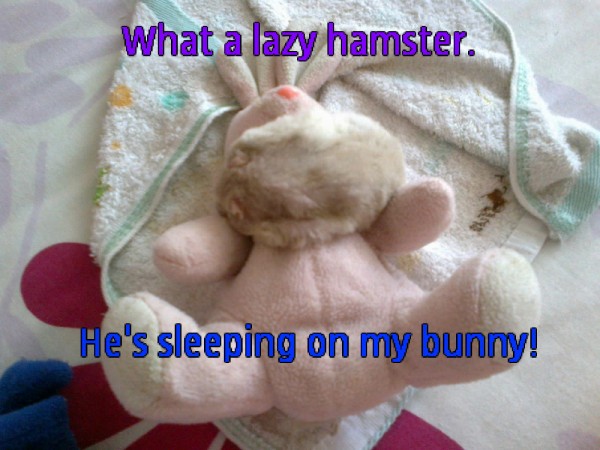 I'm looking at my hamsters' pictures now...I miss them SO MUCH! D: At least they're resting in Heaven. O.O I just realised I only have pictures and videos of one of them! Fluffy! The fatter one. I guessed I never thought about taking pictures or videos until Furry died... I have no idea how to attach photos here. I mean, I went to the Pictures tab but I don't know how they'll be arranged. I'll just try it. I'll stop writing now.