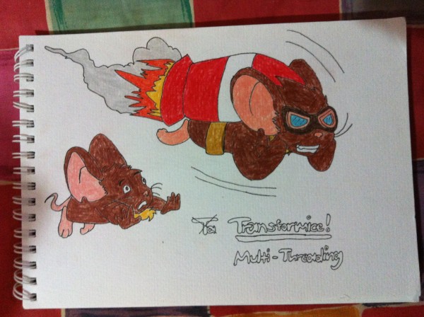 So I have FINALLY FINISHED MY DRAWING!!! Wow, I think it took me over an hour or more! So it's called "Transformice - Multi-Threading" which is their latest post (Transformice's). Hope you like it! I'm gonna go sleep now. :3