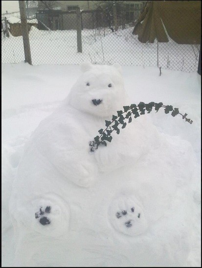 So, I'm gonna go and finish up my drawing now. Anyway, for this entry's art, I'm gonna go and upload a photo of a snow bear (the name's Frosty Fur) that Deni made! Most unfortunately, though, Frosty Fur was killed by a hit-and-run with a truck! R.I.P, Frosty Fur.